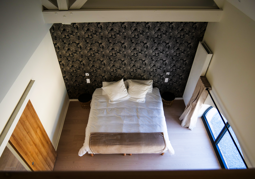 Chambre pour 2 personnes composée d’une chambre avec un lit king size de 180/200 (possibilité de les séparer en deux lits single), une salle de bain avec douche et 2 vasques, un WC séparé, une mezzanine avec salon et télévision.